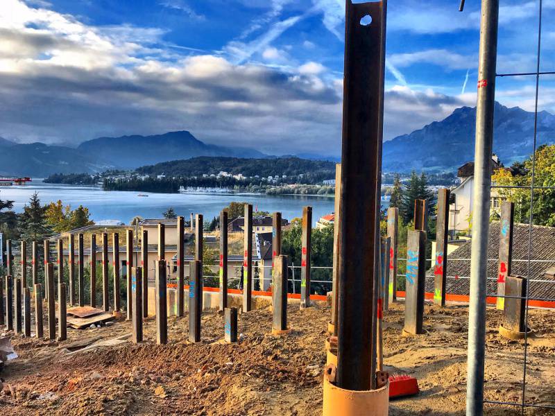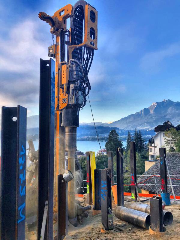 Erstellen eines Fangedamms für die temporäre Baustellenzufahrt.